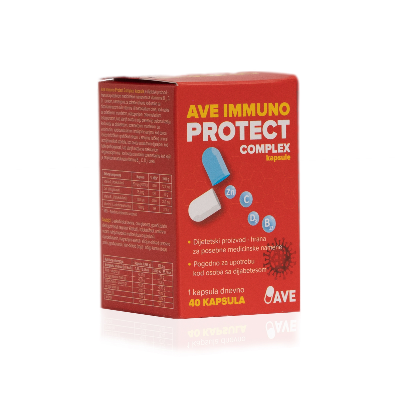 Ave Immuno Protect Complex se preporučuje u stanjima hipovitaminoze vitamina B12, C i D3, ooslabljenog imuniteta, osteopenije i osteomalacije, osteoporoze, kod prevencije preloma kostiju, dijabetesa, autoimunih oboljenja, kardiovaskularnih oboljenja, maligna stanja, fizikog i i psihičog stresa, fizičkog umora i iscrpljenosti, akutne dijareje, pothranjenosti, makularne degeneracije oka.
