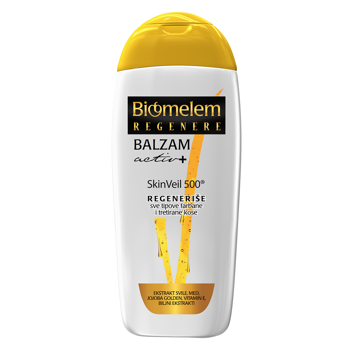 Balzam Aktiv + iz kolekcije Regenere koji regeneriše sve tipove farbane i tretirane kose. Sadrži SkinVeil 500.