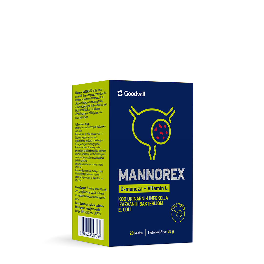 MANNOREX je dijetetski proizvod – hrana za posebne medicinske namene za potrebe ishrane osoba sa akutnom infekcijom urinarnog trakta izazvane bakterijom Escherichia coli, kao i kod osoba kod kojih su prisutne učestale urinarne infekcije izazvane ovom bakterijom.