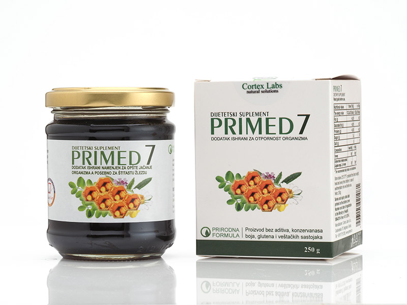 Preparat PRIMED 7 je napravljen po proverenoj recepturi na bazi meda i ekstrakta nezrelih plodova oraha. Sadrži očuvane sastojke nezrelih plodova oraha koji su u tradicionalnoj etnokulturi Balkana cenjeni kao izvor visokovrednih hranljivih i aktivnih fitosastojaka.