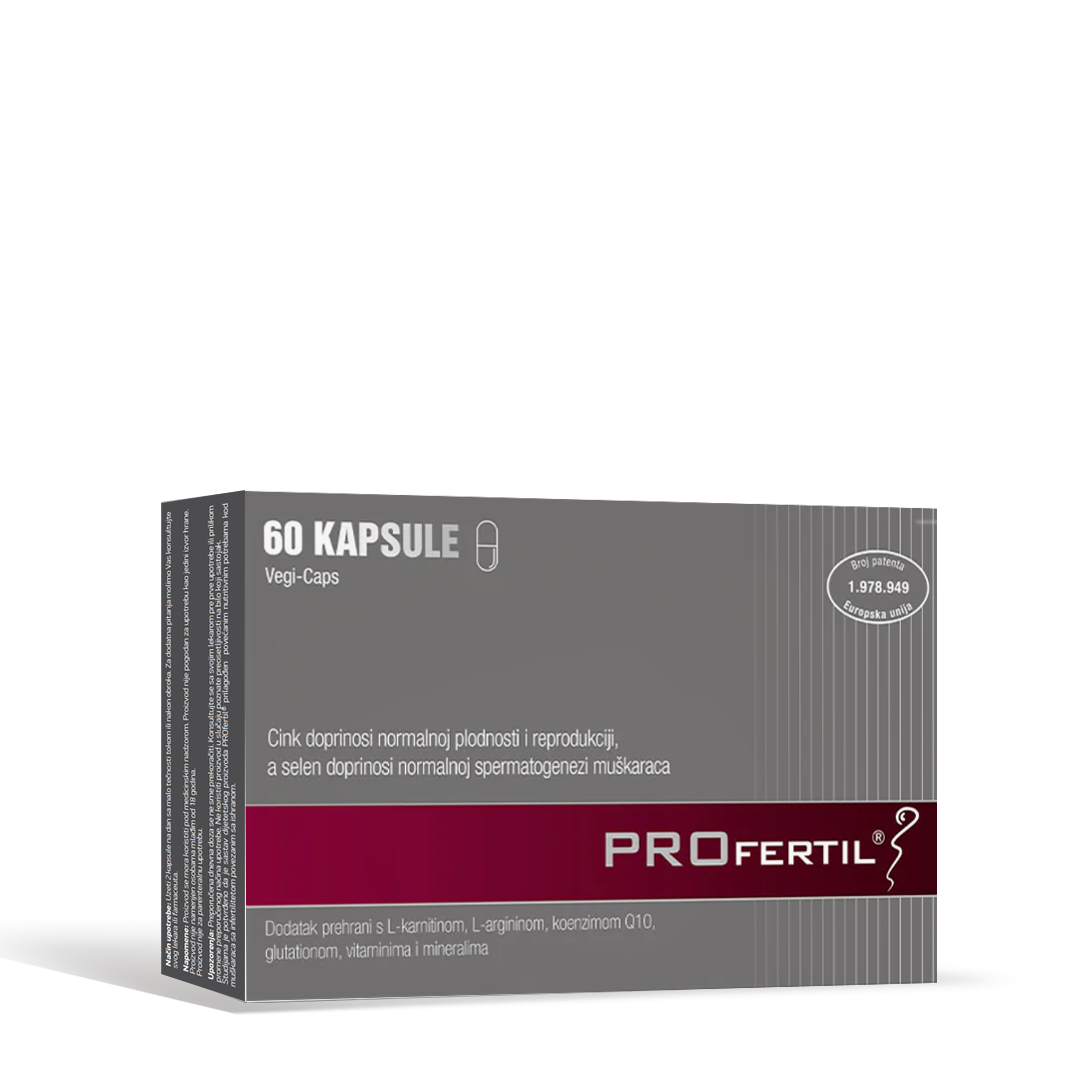 PROfertil© JE ORIGINALNI VITAMINSKI KOMPLEKS ZA DIJETETSKI TRETMAN SMANJENE PLODNOSTI MUŠKARCA. Aktivne supstance PROfertil©-a su mikronutritijenti potrebni za razvoj spermatozoida.