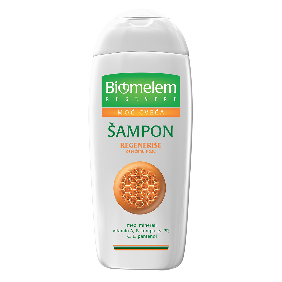 Za razliku od drugih šampona u osnovi sadrži čistu izvorsku oligomineralnu vodu i dragocene aktivne sastojke meda, minerale, biljne proteine, vitamine A, B kompleks, PP, C, E, čije hranljivo i antioksidativno dejstvo omogućava brzu i efikasnu regeneraciju kose, daje joj snagu, sjaj i omogućava lako raščešljavanje.