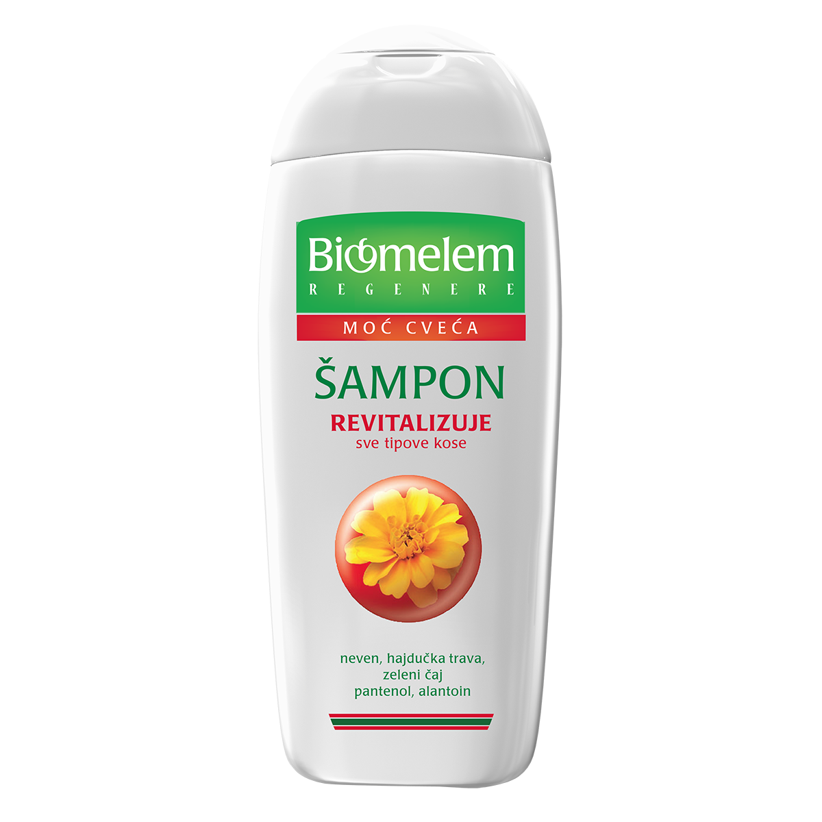 Za razliku od drugih šampona u osnovi sadrži čistu izvorsku oligomineralnu vodu i sofisticirani biljni kompleks nevena, hajdučke trave, zelenog čaja, pantenol i alantoin zahvaljujući kojima intenzivno hidrira, regeneriše, jača dlaku i koren kose.